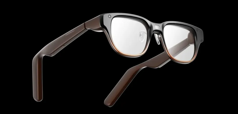这款概念眼镜重量控制在约45克,配备了双Micro-OLED显示屏,提供28度视场角和高达1500尼特的亮度,确保在户外或光线复杂的办公环境下,屏幕信息依然清晰可见。